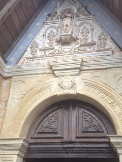 dice: MEMENTO HOMO QUIA PULVI ES ET IN PULVEREM REVERTERIS. No hay que ser genio para comprenderla, creo! Luego salimos del jardín y nos encontramos con la controversial puerta de la iglesia, y digo controversial por la inscripción arriba de la puerta: TERRIBILIS EST LOCUS ISTE (este es un lugar terrible), ya se imaginarán lo que dicen los místicos...